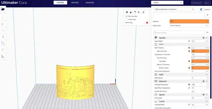 Artık 3D litofan modelini tasarlayıp hazırladığına göre, sıra 3D baskıda. Photoshop ile de 3D baskı yapabilmesine rağmen, hepimiz kendi favori dilimleyicilerimizle yazdırmayı tercih ediyoruz.