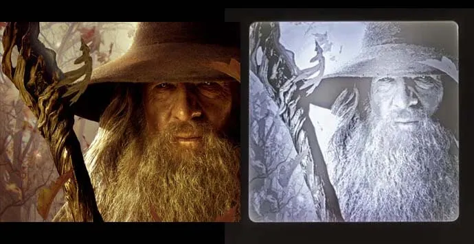 3D baskı sırasında etkisi pek anlaşılmasa da modeli ışığa tuttuğunda ayrıntılara hayran kalacağına eminiz. Litofanların çalışma şekli, resmi 3 boyutlu yaparken bazı bölgeler daha kalın olur ve bu kalın bölgeler ışığın geçmesini engellediği için aşağıdaki Gandalf resminde olduğu gibi ışıktaki farklılıklar görüntünün ayrıntılarını ortaya çıkarır.